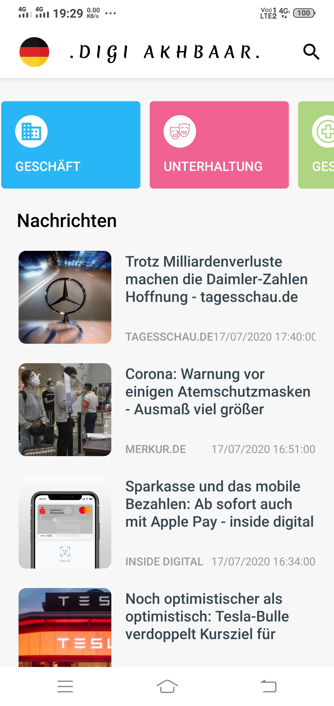 3.) With the change of country or region, the language of the news also changes. For example: For Germany news, the app will automatically turn into german.